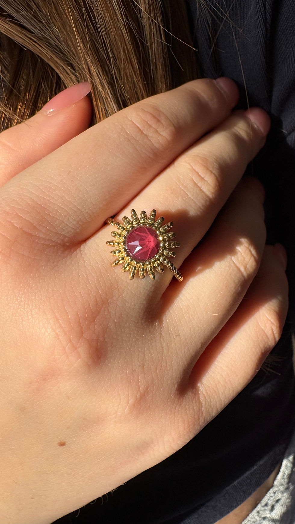 Bague Dao dorée avec cristal Dark Red